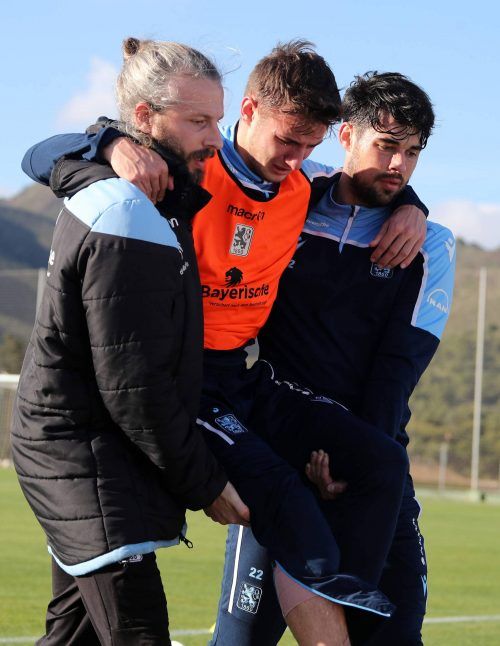 Eine Szene, die schon beim Zuschauen weh tat: Abwehrtalent Niklas Lang verdrehte sich beim internen Testspiel das Knie, konnte nicht mehr auftreten und kämpfte mit den Tränen, während er vom Platz getragen wurde. Aaron Berzel und Physio Nick Wurian schleppten den 17-Jährigen zu einem Kleinbus, mit d
