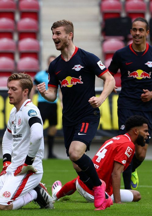 Mainz – 8:0 im Hinspiel, 5:0 im Rückspiel – und wieder dreimal Timo Werner: Die Scharfschützen von RB Leipzig haben mit dem nächsten Kantersieg gegen den FSV Mainz 05 im Fünfkampf um die Champions League zurückgeschlagen. Der haushoch überlegene Herbstmeister gewann bei den Rheinhessen locker-leicht
