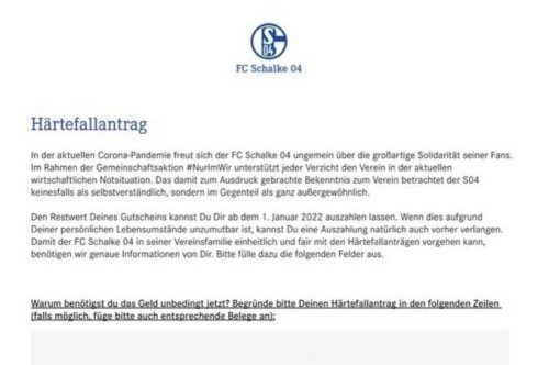 München – Als ein Schreiben des FC Schalke 04 zum Thema „Härtefallregelung“ am Mittwoch in den sozialen Medien die Runde machte, reagierten viele erst einmal misstrauisch: Eine Fälschung? Ein Streich mit Photoshop, gedacht, um den Verein zu diskreditieren? Denn: So spricht man doch nicht mit seinen