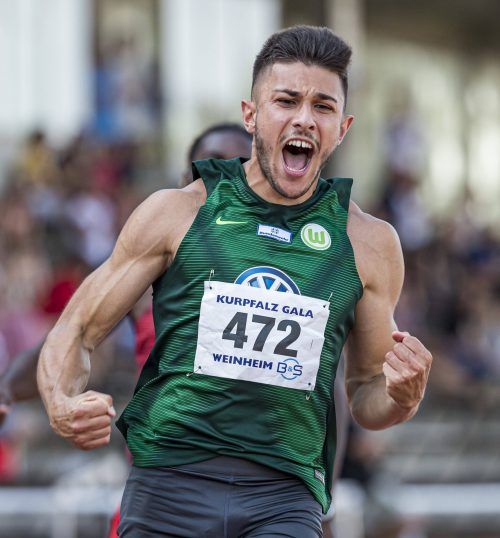Weinheim – Hobby-Fußballer Deniz Almas blickte nach seinem furiosen Sprint im Sepp-Herberger-Stadion etwas ungläubig auf die Anzeigetafel, die Siegerzeit von 10,08 Sekunden musste der junge Mann erst mal sacken lassen. „Im ersten Moment war ich nicht sicher, ob die Zeitmessung stimmt, denn da gab es