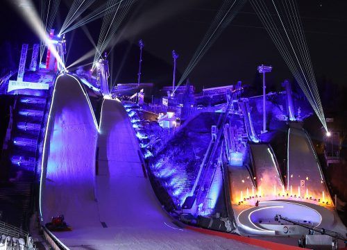Oberstdorfer WM: Lasershow im leeren Stadion