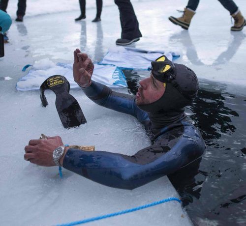 Helsinki – Mit 120 Metern in drei Minuten ist dem Franzosen Arthur Guérin-Boëri ein weiterer Rekord beim Apnoetauchen unter Eis gelungen. Guérin-Boëri absolvierte seinen Tauchgang am Donnerstag im zwei Grad kalten Wasser des Sonnanen-Sees im Südosten Finnlands. „Unter dem Eis fühlt man sich relativ