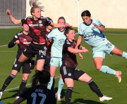 München – Rot oder blau? FC Bayern oder FC Chelsea? Am Sonntag (13.30 Uhr, Sport1) geht’s im Londoner Kingsmeadow Stadium um den Einzug ins Champions-League-Finale. Die Münchner Frauen reisen mit einem 2:1-Hinspielsieg auf die Insel, wollen dort die erste Endspiel-Teilnahme der