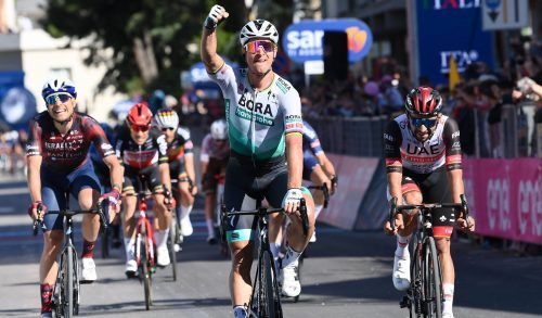 Der dreimalige Straßenrad-Weltmeister Peter Sagan (Mitte/Foto: Imago) hat dem deutschen Bora-hansgrohe-Team den ersten Etappensieg beim diesjährigen Giro d’Italia beschert. Nachdem seine Mannschaft mit einer immensen Tempoarbeit im letzten Drittel der 10. Etappe über 139 km von L’Aquila nach Foligno