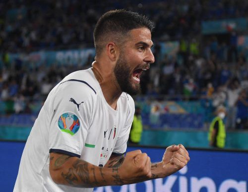 Florenz – Italiens Nationalspieler Lorenzo Insigne (Foto: afp/Mike Hewitt) st angesichts der geringen Erwartungen an die Mannschaft vor der EM besonders stolz auf die bisherigen Auftritte. „Zu Beginn hat niemand an uns geglaubt. Wir bleiben mit den Füßen auf dem Boden, arbeiten hart und machen so we