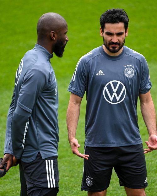 Die bisherigen EM-Stammspieler Antonio Rüdiger und Ilkay Gündogan haben zwei Tage vor dem Achtelfinal-Hit gegen England nicht mit der deutschen Fußball-Nationalmannschaft trainiert. Abwehrspieler Rüdiger (28) vom FC Chelsea musste am Sonntag wegen einer Erkältung im DFB-Quartier bleiben, konnte nur