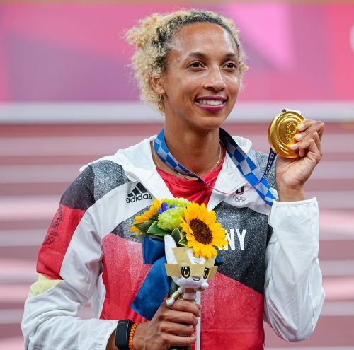 Auf eine große Siegesparty hat Malaika Mihambo (Foto: Michael Kappeler/dpa) nach ihrem Gold-Sprung von Tokio verzichten müssen. „Ich habe nicht gefeiert, ich war um 22.30 Uhr einfach fertig und habe mich auf mein Bett gefreut. Ich habe mich einfach hingelegt und geschlafen“, sagte d