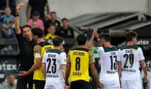 Aytekin hat gerade dem Dortmunder Mittelfeldspieler Mo Dahoud (Mi