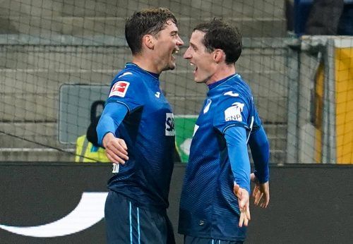 Sebastian Rudy (r.) und Robert Skov beim Buddy-Jubel: 2:0 gewann ihre TSG Hoffenheim gegen Hertha BSC. Mit dem Aufschwung bei den Berlinern ist es somit schon wieder vorbei. Vor nur 8127 Zuschauern in Sinsheim erzielte der kroatische WM-Zweite Kramaric seinen zweiten Saisontreffer (19. Minute), Seba