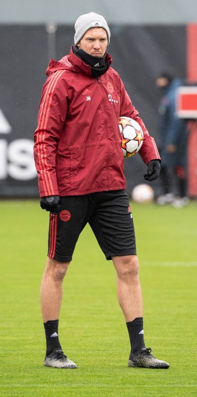 München – Gut gelaunt tippelte Julian Nagelsmann am Montagnachmittag auf den Trainingsplatz. Der Bayern-Cheftrainer – untenherum luftig in kurzer schwarzer Hose, oben dick eingepackt mit Halswärmer und grauer Mütze – ließ sich nicht anmerken, dass es hinter den Kulissen der Säbener