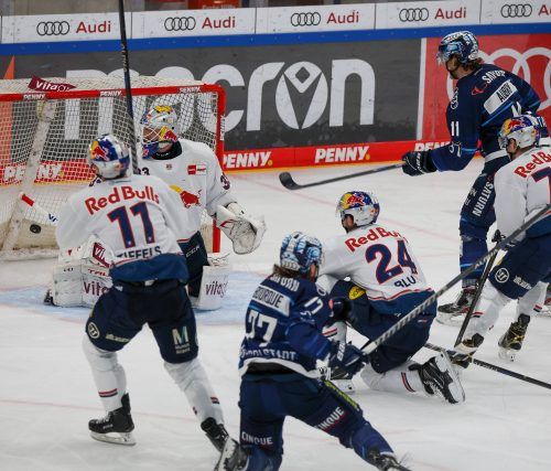 München – Ex-Meister Red Bull München hat seine Tabellenführung in der Deutschen Eishockey Liga (DEL) gefestigt. Die Münchner feierten in einem Nachholspiel beim ERC Ingolstadt nach zuletzt zwei Niederlagen in Folge einen 4:3 (1:0, 1:1, 2:2)-Erfolg und führen die Liga weiter vor den Adlern Mannheim