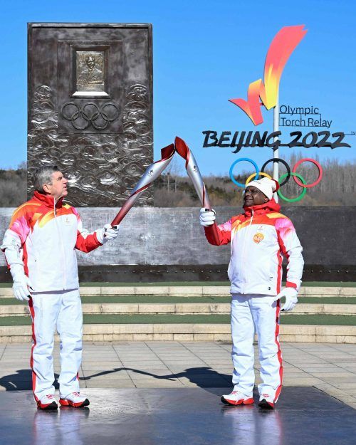 Fängt Thomas Bach wieder mit dem Fechten an? Nein, auf diesem Bild übergibt der IOC-Präsident die olympische Flamme symbolisch an Abdulla Shahid. Shadid ist Präsident der Generalversammlung der Vereinten Nationen und ein maledivischer Diplomat. foto: afp