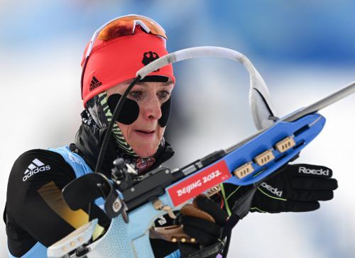 Zhangjiakou – Denise Herrmann musste die Augen zukneifen, weil ihr der eisige Wind unerbittlich ins Gesicht pfiff. Die Biathletin war kaum zu erkennen, nachdem sie sich Stirn und Wangen abgeklebt und mit Buff, Mütze und mehreren Lagen Kleidung vor der schwer erträglichen Kälte geschützt hatte. Beim