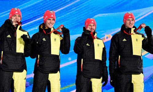 Gold: Norwegen (Lägreid, T. Bö, J.T. Bö, Christiansen) 1:19:50,2 Stunden (7 Nachlader/1 Strafrunde)