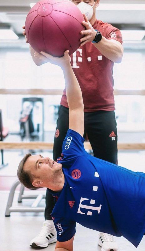 So turnt man sich zurück ins Tor! Vor zwei Wochen wurde Manuel Neuer (35) am Innenmeniskus im rechten Knie operiert. Den Eingriff führte Spezialist Prof. Dr. Christian Fink in der Nähe von Innsbruck durch. Bereits kurz danach startete der Bayern-Kapitän seine Reha in der Privatklinik Hochrum. Nun ve
