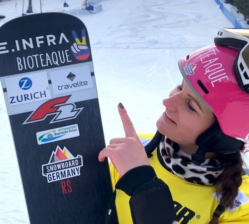 Eine Victoryhand, oben in den Nationalfarben der Ukraine, unten in denen Russlands. Seit dem Weltcup in Piacavallo, dem ersten nach Ausbruch des Kriegs, kleben viele Profis dieses spezielle Friedenssymbol auf ihre Boards – als Zeichen der Solidarität mit den nicht anwesenden Kolleg:innen aus der Ukr