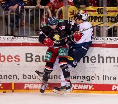 München/Düsseldorf – In der Viertelfinal-Serie gegen die Düsseldorfer EG hat der EHC Red Bull München den 1:1 Ausgleich kassiert. Auswärts verlor das Team von Trainer Don Jackson mit 2:3. Die Begegnung stand dem ersten Spiel der Serie, das die Münchner mit 4:2 gewonnen hatten, um