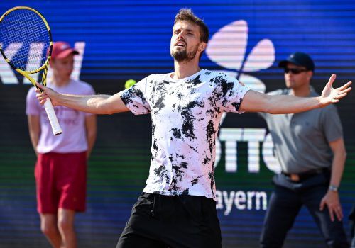 Oscar Otte (Foto: dpa/hoppe) breitet die Arme aus, kurz darauf jubelt er mit geballten Fäusten: Der Kölner steht nach seinem Sieg über den US-Amerikaner Reilly Opelka im Viertelfinale der BMW-Open. Inklusiver zweier abgewehrter Satzbälle im ersten Satz gewann er 7:6, 6:2. Der Weltranglisten-62. ist