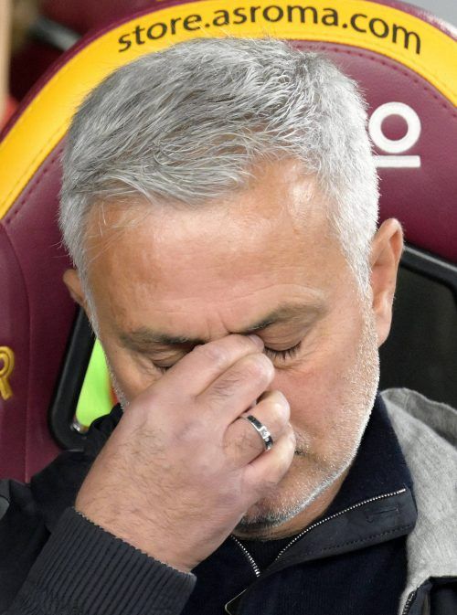 Nach dem Einzug ins Finale der Conference League mit der AS Rom weinte der sonst so coole und manchmal großspurige Jose Mourinho (Foto: epa) hemmungslos. „Warum ich in Tränen ausgebrochen bin? Weil ich fühle, was sie alle fühlen“, sagte der Star-Fußballtrainer nach dem 1:0 im Halbfinalrückspiel der