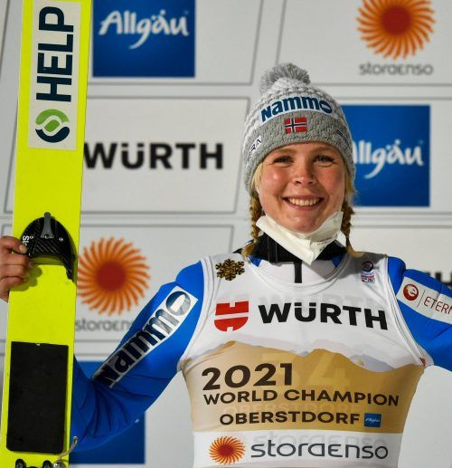 Das Lächeln ist zurück im Gesicht von Maren Lundby (Foto: afp). Sicher, sagt die beste Skispringerin ihrer Generation, ihr Comeback auf den Schanzen dieser Welt werde „eine Herausforderung“. Aber, betont die 27-Jährige, „ich habe das Gefühl, dass ich auf dem richtigen Weg bin“. Zurück ins Glück. Im