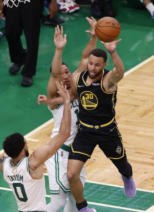 Boston – Die Schmerzen im linken Bein konnten Stephen Curry auf dem Weg zu seiner Gala-Vorstellung beim wichtigen Finals-Sieg für die Golden State Warriors nicht aufhalten. 43 Punkte verbuchte der NBA-Superstar beim 107:97 gegen die Boston Celtics, in der hart umkämpften Serie steht es vor dem fünft