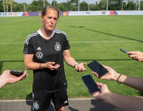 London – Kurz hatte auch Martina Voss-Tecklenburg mit Lena Lattwein und Jan-Ingwer Callsen-Bracker, dem für neurozentrisches Training zuständigen Experten und Ex-Profi versucht, den Ball hochzuhalten. Es dauerte nicht lange, dann versprang der Bundestrainerin die Kugel, da half a