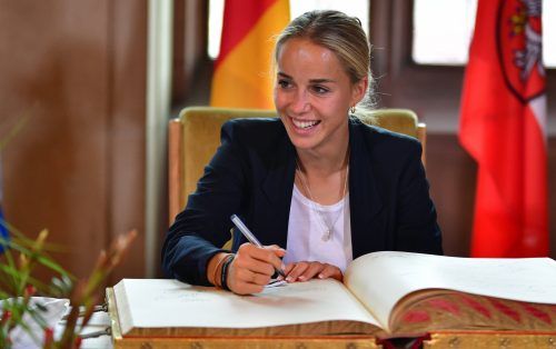 Knapp 7000 begeisterte Menschen haben die deutschen Fußball-Frauen am Montag bei der Rückkehr von der Europameisterschaft in England auf dem Frankfurter Römer gefeiert. Das Team von Bundestrainerin Martina Voss-Tecklenburg hatte den neunten EM-Titel durch die 1:2-Niederlage nach Verlängerung im Fina