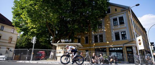 Pirmin Benz düst auf unserem Bild durch die Innenstadt von Weimar, wo das größte Radsportevent des Landes begann. Die Deutschland Tour führt an fünf Renntagen bis zum Sonntag über rund 700 km mit 11 000 Höhenmetern von Weimar bis nach Stuttgart, ein Höhepunkt ist die Bergankunft am Schauinsland bei