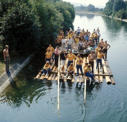 Der 26. August war der Tag der großen Eröffnungsfeier, deshalb muss bezweifelt werden, ob dieses Foto tatsächlich da aufgenommen wurde. In der Bilddatenbank steht auch der Hinweis, der Fotograf habe das Datum geschätzt. Wahrscheinlich fand die Floßfahrt auf der Isar kurz vor den Wettbewerben statt.