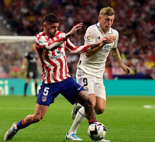 Ex-Weltmeister Toni Kroos (Foto: afp) und Real Madrid geben sich in der neuen Saison weiterhin keine Blöße. Durch den 2:1 (2:0)-Erfolg im Derby bei Atletico Madrid feierte der Titelverteidiger am Sonntag im sechsten Spiel den sechsten Sieg und bleibt damit die einzige Mannschaft in LaLiga mit einer