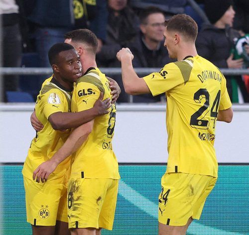 Hannover – Nach dem mühevollen Einzug ins Achtelfinale des DFB-Pokals bedankten sich die Profis von Borussia Dortmund bei Torhüter Gregor Kobel. Auch dank einer überragenden Leistung des Schweizers setzte sich der wieder mal rätselhafte BVB am Mittwoch mit 2:0 (1:0) beim Zweitligisten Hannover 96 du
