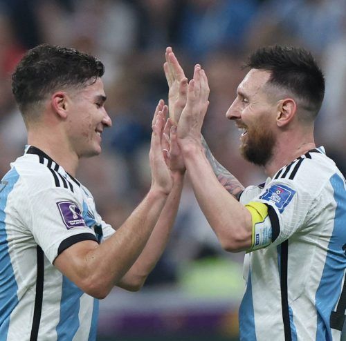 Vor elf Jahren bat Julian Alvarez Lionel Messi um ein Foto, jetzt gehen Bilder der beiden um die Welt – und Argentinien feiert sein ungleiches Duo. „Angeführt von einem magischen Messi und einem tödlichen Alvarez“, schwärmte die Zeitung „Clarin“, strebe die Albiceleste am Sonntag gegen Titelverteidi