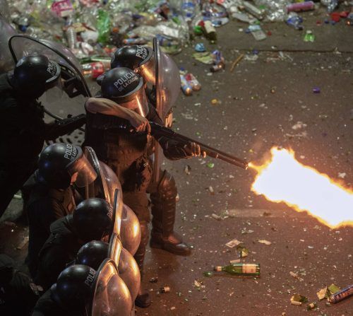 Stunden nach dem Abbruch der Siegesfeier für den WM-Titel der argentinischen Nationalmannschaft ist es in Buenos Aires zu Zusammenstößen gekommen. Laut lokale Medien wurden dabei mindestens acht Menschen verletzt. Auf Fotos war zu sehen, wie Einsatzkräfte mit Helmen und Schildern geschützt in Format
