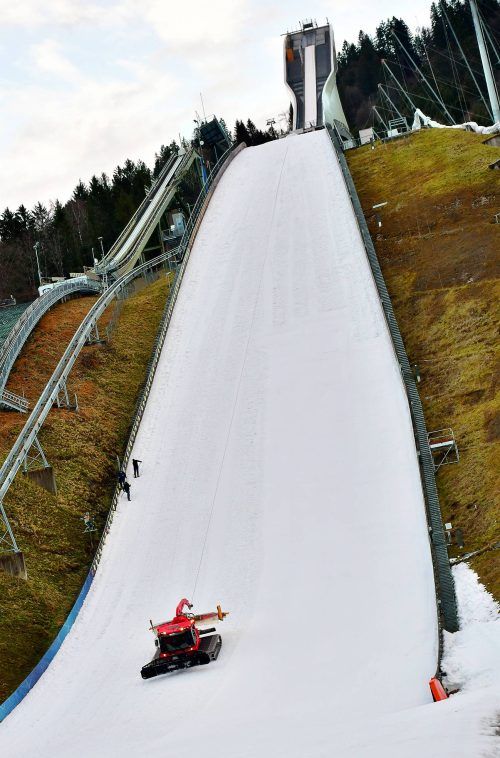 Garmisch-Partenkirchen – Einsam kämpft sich die Pistenraupe über den steilen Hang unter der Skisprungschanze in Garmisch-Partenkirchen. Die Ruhe auf dem Kunstschnee ist in ein paar Tagen allerdings vorbei. Am 1. Januar steht das Neujahrsspringen der Vierschanzentournee an. Drei Tage später sind dann
