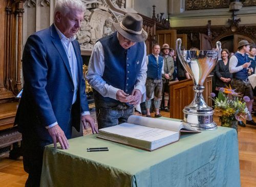 Eishockey-Meister EHC zu Besuch im Rathaus – und FC-Bayern-like sogar auf dem Balkon