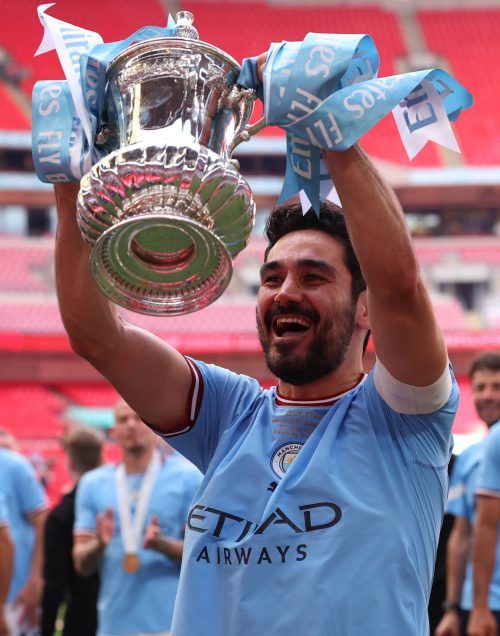 London – Ilkay Gündogan riss den Pokal mit den himmelblauen Bändchen an den Henkeln in die Luft und gab der Trophäe im Konfetti-Regen einen dicken Schmatzer. Der Kapitän von Manchester City ließ bei den Feierlichkeiten in Wembley erst einmal keinen anderen an den FA-Cup ran – schließlich hatte er da