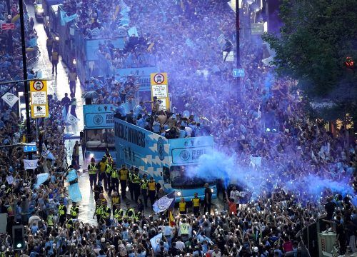 Auch Blitz und Donner konnten den Jubelorkan bei Manchester Citys Triple-Parade nach dem Siegeszug von Ilkay Gündogan und Co. nicht stoppen. Als die Triumphfahrt des frischgekürten Champions-League-Gewinners mit den drei Trophäen der Saison nach einem heftigen Sommer-Unwetter in einem offenen Partyb