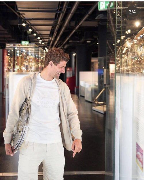 Für diese wertvolle Fracht schlüpfte Thomas Müller (33) gerne in die Rolle des Lieferanten: Der dienstälteste Bayern-Profi brachte zu Beginn der Woche die Meisterschale in die Allianz Arena und legte die Trophäe für den elften Meistertitel hintereinander in die bereitgestellte Vitrine im FCB-Museum.