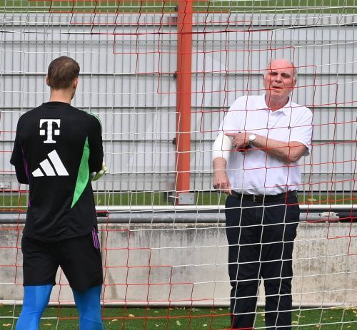 Prominenter Trainingsgast an der Säbener Straße. Ehrenpräsident Uli Hoeneß war gestern (mit verbundenem rechtem Arm) auf dem Platz und begutachtete Manuel Neuer. Auch die gestrige Einheit des 37-Jährigen sah gut aus, nichtsdestotrotz wird er noch Zeit brauchen, ehe er im Mannschaftstraining steht. L