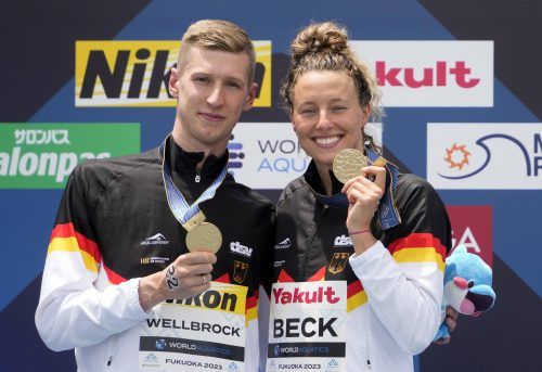 Fukuoka – Während sich Leonie Beck schon auf ihre Siegerehrung vorbereitete, genoss Florian Wellbrock in der Hitze von Fukuoka ein Eisbad im Planschbecken. Mit allen vieren von sich gestreckt und einer kalten Cola in der Hand ließ es sich für den Doppel-Weltmeister bei 45 Grad in der Sonne aushalten
