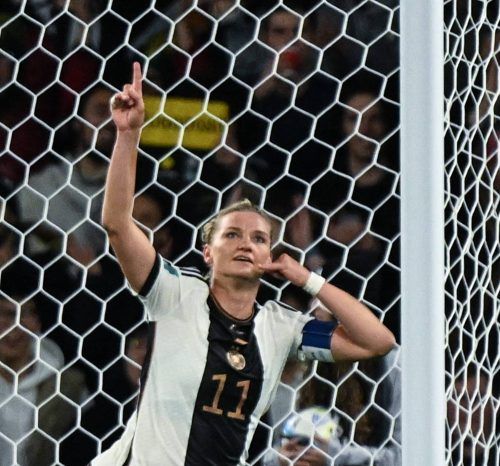 Fokus auf die WM – aber in Gedanken auch mal woanders. Deutschlands Kapitänin Alexandra Popp versteckt ihre Trauer über den Tod ihres Vater im vergangenen Dezember nicht. Der Vater der Stürmerin war damals 62-jährig an Kehlkopf verstorben. An ihn richtete sich auch Popps Torjubel (Foto: Imago) gegen