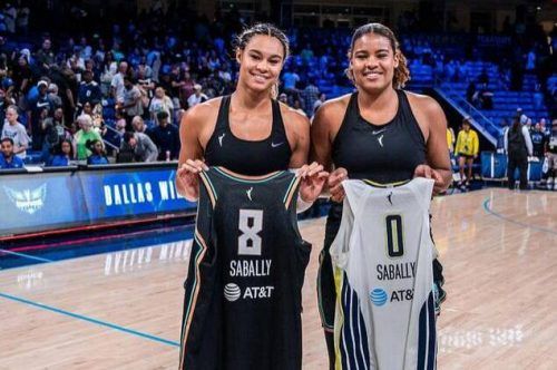 Unterstützt von Dirk Nowitzki hat Satou Sabally (li.) mit den Dallas Wings erstmals das Play-off-Halbfinale der US-Basketball-Profiliga WNBA erreicht. Die Mannschaft um die Berlinerin schlug Atlanta Dream in eigener Halle 101:74 und gewann die Best-of-three-Serie mit 2:0, ab Sonntag geht es gegen de