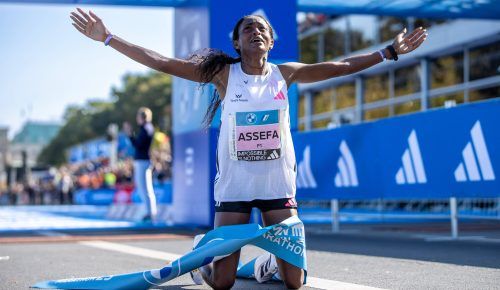 Berlin – Von der Magie des Augenblicks gerührt sank Tigist Assefa auf die Knie. Etwas ungläubig lachte die Marathon-Königin von Berlin nach ihrer Lauf-Gala für die Geschichtsbücher im Ziel, ehe sie triumphierend die Arme ausbreitete. Mit einer sensationellen Fabelzeit von 2:11:53 Stunden pulverisier