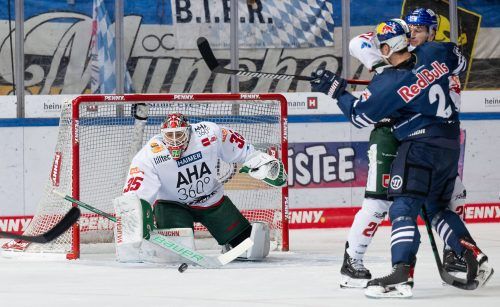 München – „Bitte zusammenrücken!“, stand auf dem Videowürfel in der Münchner Olympia-Eishalle. Zum ersten Mal in dieser Saison war ausverkauft, zur Marke von 5728 trugen 800 Gäste aus Augsburg bei. Dass man zusammenrücken solle, das galt auch für die Mannschaft des EHC Red Bull Mün