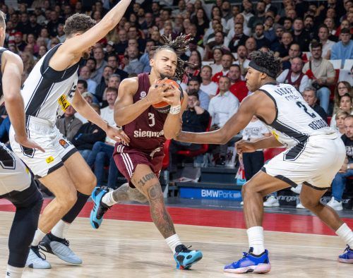 München – Der kleine Mann mit den markanten Rastazöpfen stand noch lange nach Spielende auf dem Feld des BMW Park. Plauderte und scherzte. Als wollte er ihn noch ein bisschen festhalten, diesen ungewöhnlichen Basketball-Abend. 94:85 hatte er sich mit seinem FC Bayern gegen Part