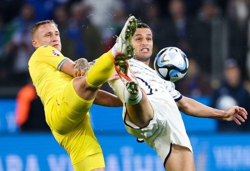 Mit beherztem Offensivfußball, aber ohne Treffer hat sich Europameister Italien im mitreißenden „Finale der Gruppe C“ gegen die Ukraine das Ticket für die EM in Deutschland gesichert. In Leverkusen genügte dem Titelverteidiger ein 0:0, um Tabellenplatz zwei hinter England zu behaupten. Die mit 14 Zä