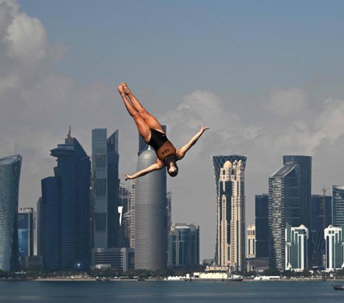 Die Skyline von Doha, weltbekannt seit der Fußball-WM 2022, taugt auch bei der Weltmeisterschaft des Schwimmer und Wasserspringer für spektakuläre Bilder. Klippenspringer Manuel Halbisch belegte im High Diving den 22. Platz. Der 26-Jährige aus Waiblingen kam nach insgesamt vier Sprüngen aus 27 m Höh