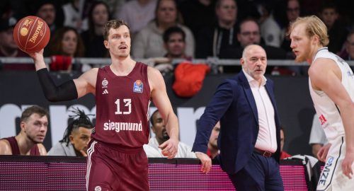 Als Titelverteidiger und Favorit geht der FC Bayern ins Top Four um den Pokal, auch wegen des Heimvorteils. Und Pablo Laso (hinten) winkt die erste Trophäe im Ausland. „Es ist lustig, sogar die eigene Familie macht dir Druck“, sagte der FCB-Trainer, warnte aber auch vor dem Halbfinale gegen Bamberg