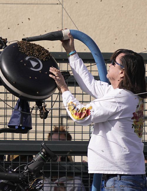 Plötzlich: Ein Bienenschwarm auf dem Center Court von Indian Wells – und anders als Alexander Zverev wirkte Carlos Alcaraz (r.) zunächst nicht ganz so entspannt. Er flüchtete in die Kabine und gestand später: „Ich will nicht lügen, ich habe ein bisschen Angst vor Bienen. Das war mit Sicherheit das u