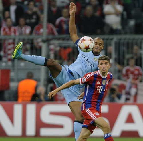 Thomas Müller (r.) spielte schon gegen den Ex-City-Star, nun ist Vincent Kompany Trainer. © IMAGO